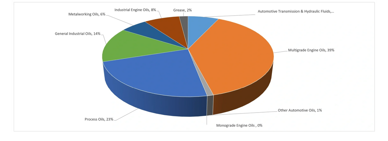 Finished lubricants are divided into two approximately equal market segments, Transportation and Industrial lubricants.